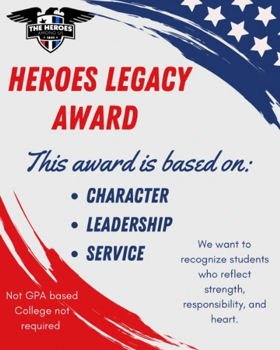 The Heroes Legacy Award is open to graduating seniors who currently attend: